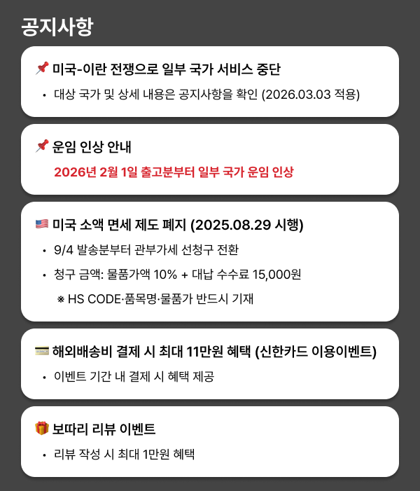 Copyright ⓒ 2022 보따리해외배송 All rights reserved.